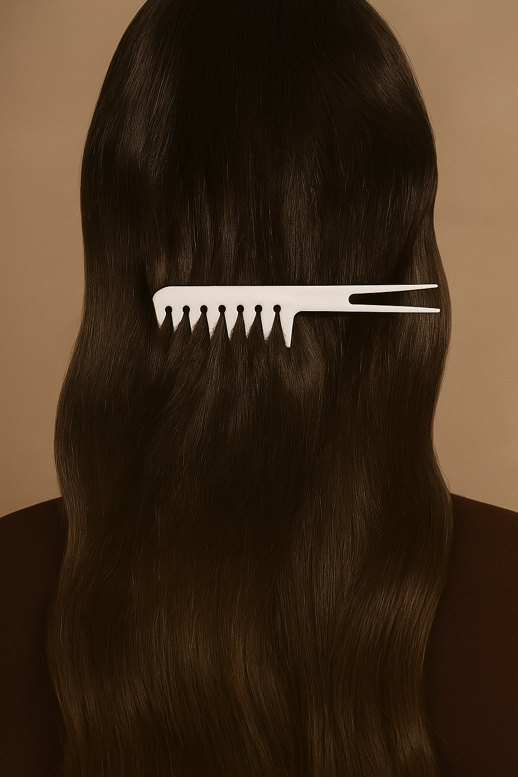 الإكستنشن مصنوع من شعر طبيعي 100% بجودة ممتازة، ناعم ولم تتم معالجته، واللون الأساسي بني غامق يندمج بسهولة مع أغلب ألوان الشعر السعودي – وقابل للتفتيح أو التلوين حسب ذوقك